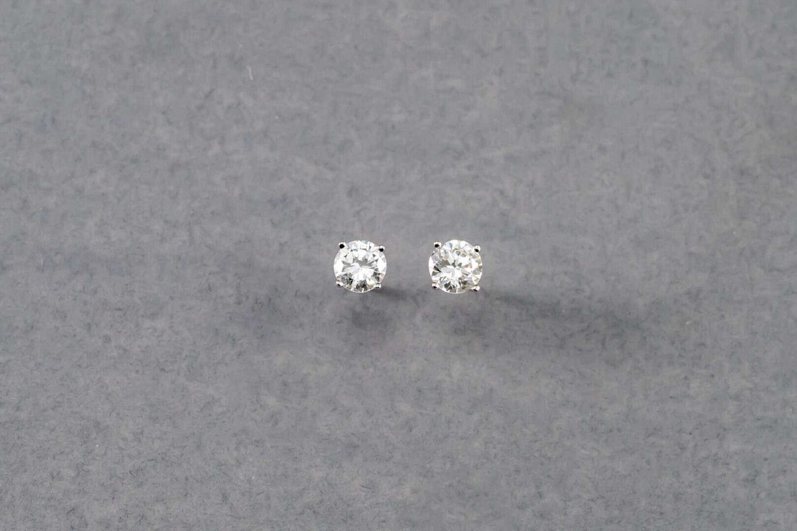 One pair of 14k white gold diamond stud earrings containing two round brilliant cut diamonds weighing .91cts. total weight. The clarity is SI1-sI2 and G-H in color. The diamonds are set in a 4 prong martini mounting.