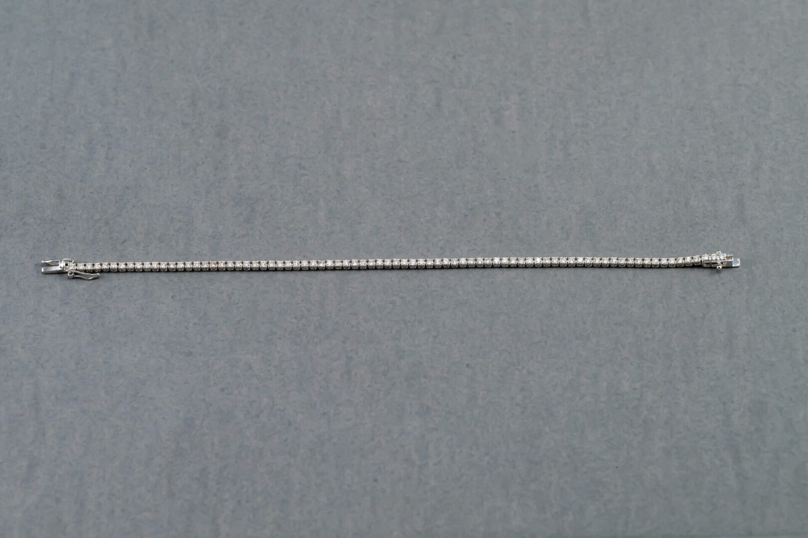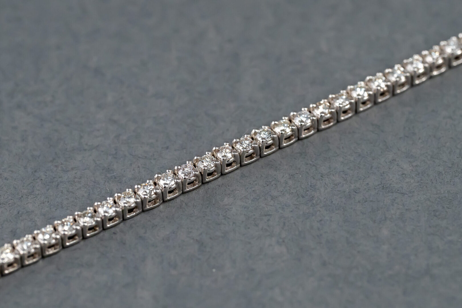 One 14k white gold diamond tennis bracelet containing 79 round brilliant cut diamonds weighing 1.56cts. total weight. The clarity is VS2-SI1 and G-H in color. The diamonds are set in prongs.