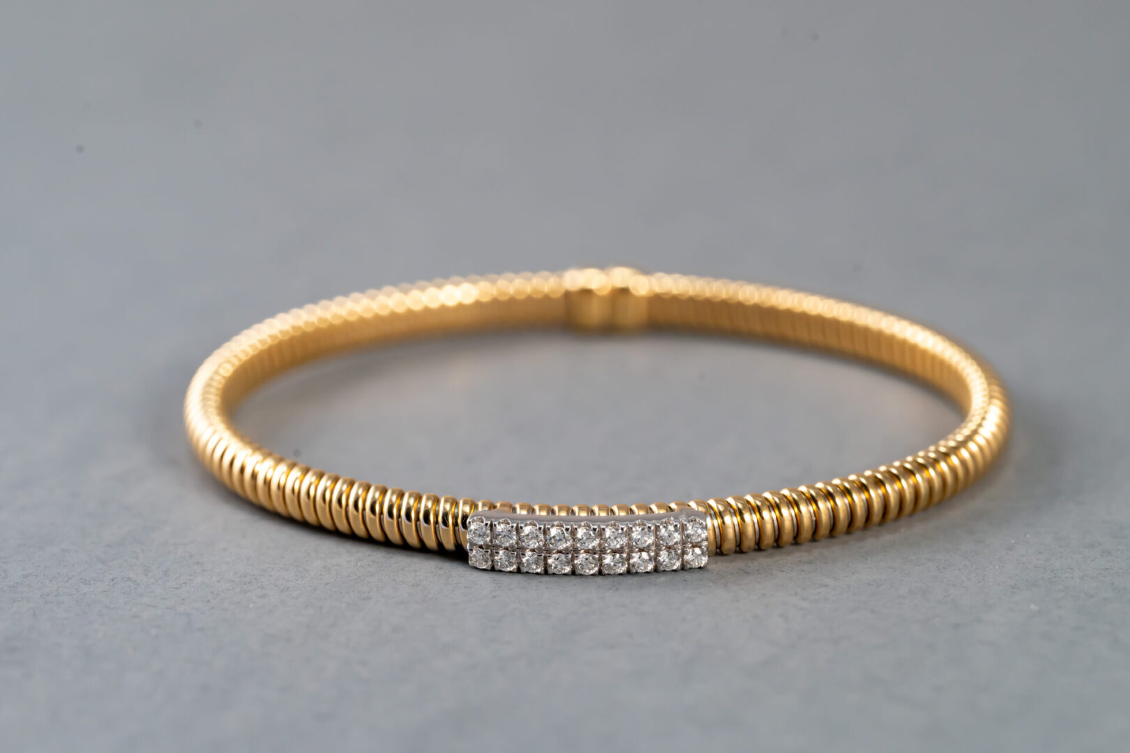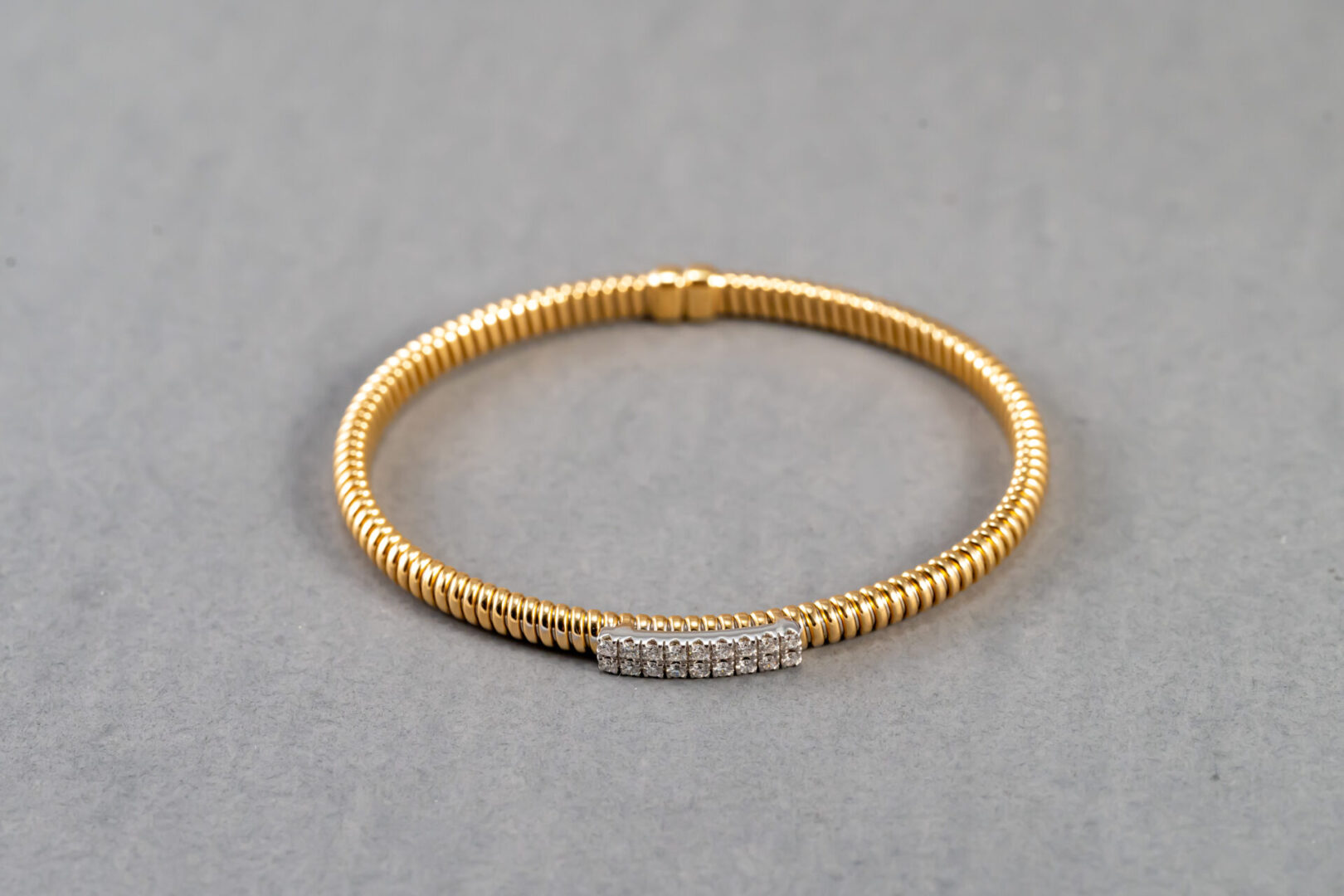 18k Yellow and White Gold Diamond Flexible Bangle Bracelet